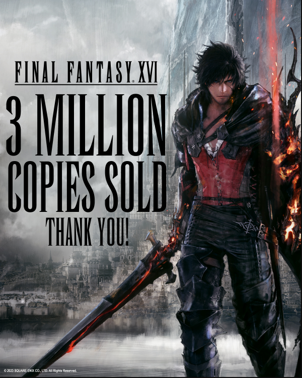 Square-Enix ha confirmado oficialmente Final Fantasy XVI, lanzado el 22 de junio, ha logrado vender más de 3 millones de copias, sumando tanto las ediciones físicas distribuidas como las vendidas digitalmente.